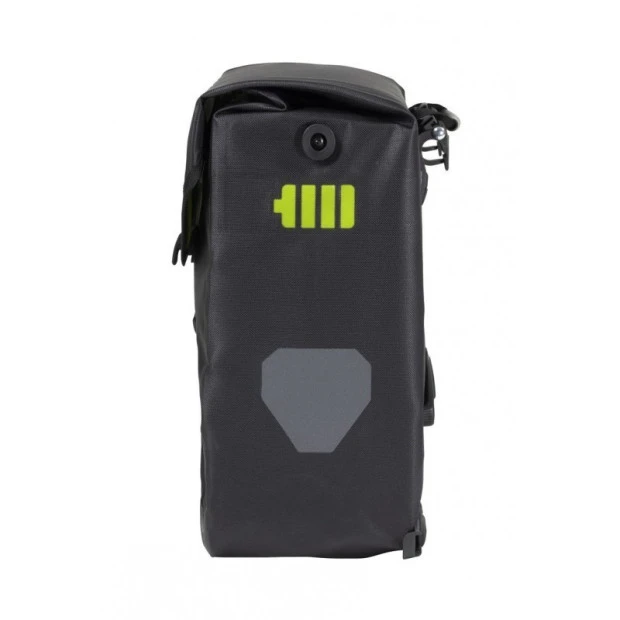 La sacoche Ortlieb E-Mate a été spécialement conçue pour le transport des batteries de vélos électriques quand ceux-ci sont attachés. Grâce à elle, vous ne risquerez plus de vous faire dérober votre batterie. Compatible avec les plus grandes marques de motoristes, elle est composée d’une structure rigide agrémentée d’un compartiment intérieur matelassé amovible pouvant accueillir l’accumulateur. Sa capacité de 16 litres vous permettra d’avoir suffisamment de place pour ranger un autre bagage ou des provisions. Vous pourrez également amener avec vous l’écran de votre vélo, en le glissant dans la poche intérieure zippée. Grâce au fermoir magnétique, son ouverture et sa fermeture seront un jeu d’enfant. Son système d’attache Quick-Lock2.1 est compatible avec pratiquement tous les porte-bagages dont le diamètre de tube ne dépasse pas 16 mm.